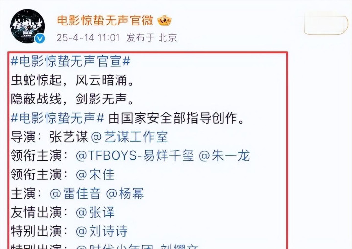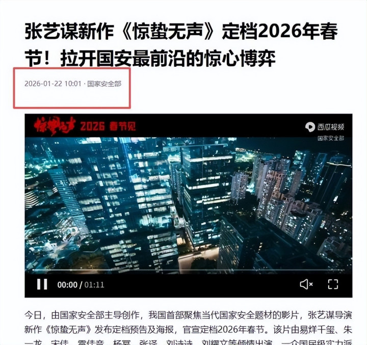 张艺谋这次带来的新片《惊蛰无声》,在这个节骨眼上定档,太有讲究。我们别以为这只是一部给春节档凑热闹的商业片,那样就把老谋子看扁了,也把国安部的格局看小了。