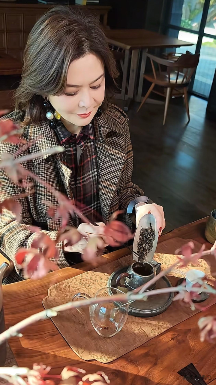 63岁关之琳初冬穿搭: 大衣+半身裙+长筒靴, 时髦又高级, 像43岁